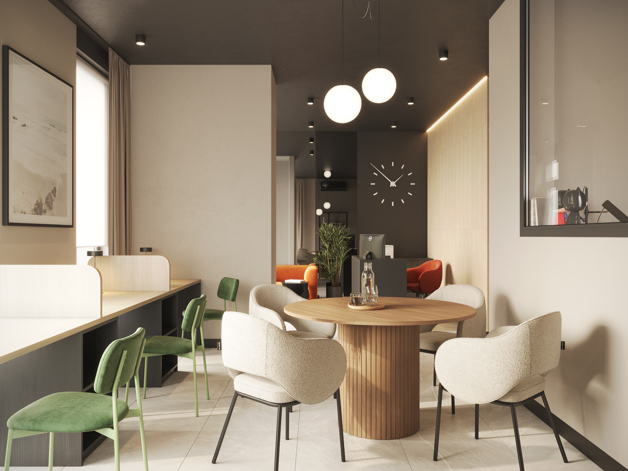 Коворкинг соседского центра — комфортная зона для работы и встреч резидентов с естественным освещением, удобными рабочими местами и стабильным Wi‑Fi. Здесь можно будет продуктивно трудиться или сменить обстановку, не покидая пределов жилого квартала.